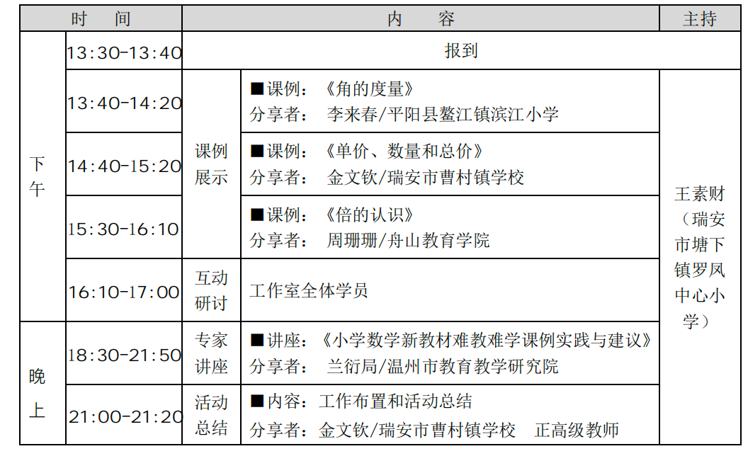 关于举行温州市金文钦小学数学“名师送教”工作室第19次活动的通知