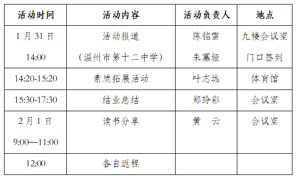 二、活动地点:温州市第十二中学