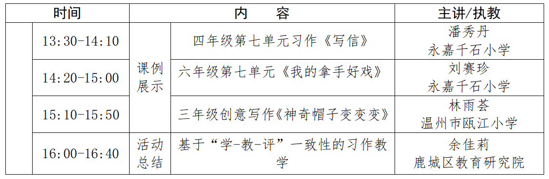关于举行温州市余佳莉“名师送教”工作室第20次活动的通知
