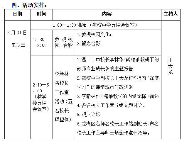 为此,特举行龙湾区王炳金名校长、李新林名校长、章少华名校长、董彩霞名校长、周行德名校长工作室联盟体活动,现将具体事项通知如下: