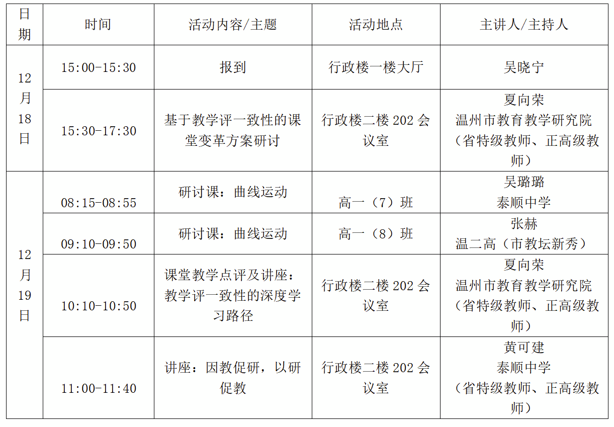关于举行温州市夏向荣“名师送教”工作室第02次活动的通知