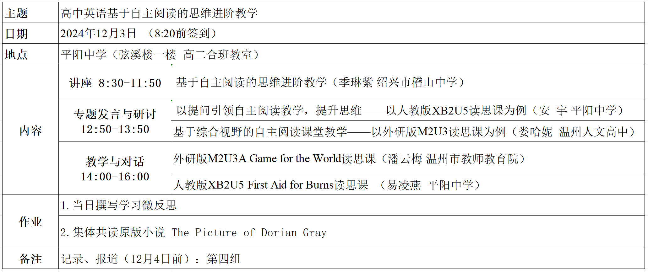 关于举行温州市潘云梅高中英语“名师送教”工作室第9次活动的通知