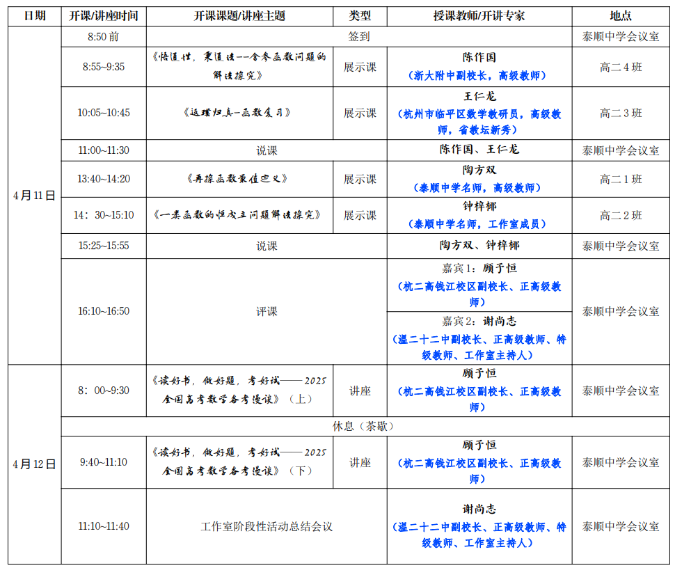 活动主持人、联络人:潘翠燕(工作室助理、泰顺中学数学教研组长、高级教师、省教坛新秀)